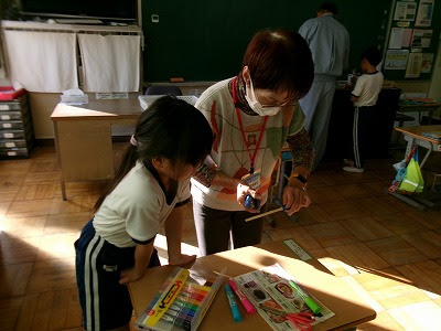 ストローと牛乳パックを再利用して竹とんぼのように組み立て、みんなで飛ばして遊びました。どんどん作れてしまうので、担任の先生に、荒井先生に、校長先生に、と子ども達はたくさん作ってくれました。先生方も大喜び。